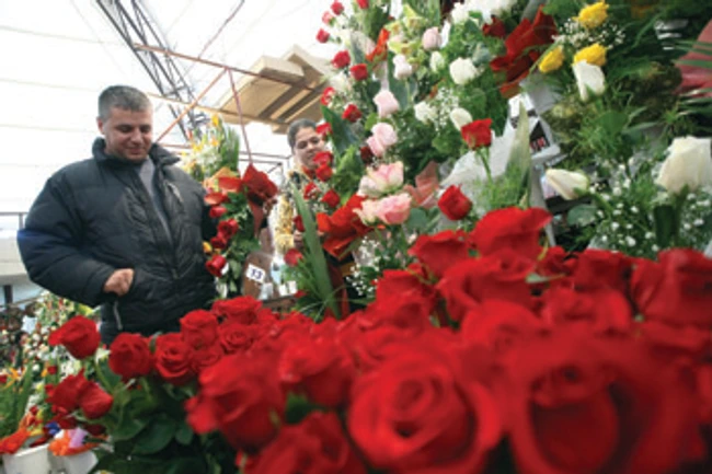 Florile au fost astăzi mai ieftine decât în zilele obişnuite, iar domnii au putut să aleagă buchete mai mari şi mai frumoase. Încă de dimineaţă, vânzătorii au avut cerere pentru trandafiri, în combinaţie cu crini, dar şi cu anturium.