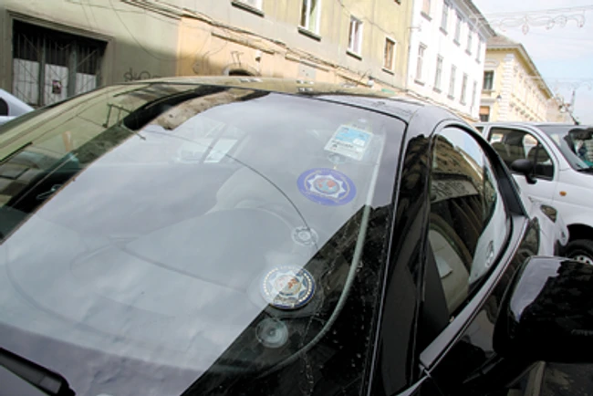 Centrul oraşului este plin, la orice oră, de maşini care au în geam însemnele poliţiştilor sindicalişti. Acestea sunt falsificate pe bandă rulantă, iar şoferii sunt, de obicei, scutiţi de amenzi. Şeful sindicatului ştie de această problemă.