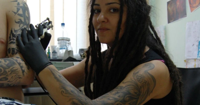 „În prima zi, cei ce mă învăţau mi-au dat o piele sintetică, să tatuez pe ea. Şi când au venit să vadă ce am făcut, au fost uimiţi, iar a doua zi am şi tatuat pe un om. Doar că atunci când am văzut sânge, m-am speriat. Şi doar după ce m-au tatuat băieţii am simţit că nu doare aşa de rău şi am putut continua”, a mai spus Alina. Între timp însă, băieţii nu au ezitat să glumească şi să spună că îmi aduc ei o mână de la morgă, ca să exersez pe piele naturală.