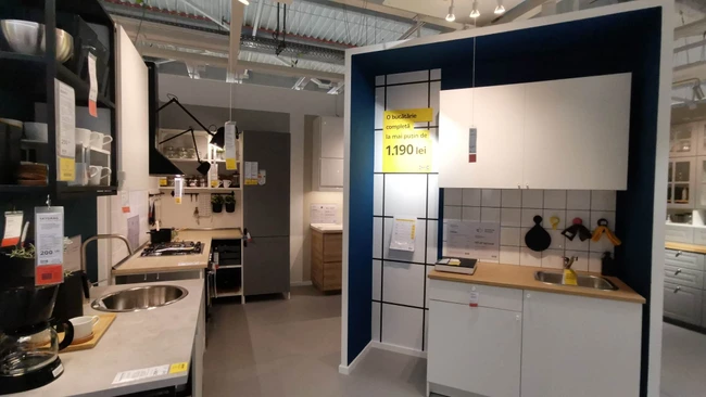 Iată câteva exemple. Scaune la 239 de lei, bucătărie completă la 4.378 de lei, masă plus două scaune cu 289 de lei, farfurie adâncă cu 2.90 de lei, duză pulverizator cu 24.90 de lei, plită cu inducție cu 239 de lei, dulap la 1.680 de lei, etajeră la 179 de lei, colțar extensibil cu 2.699 de lei, bilitecă Billy la 299 de lei, husă pilotă plus două fețe de pernă cu 99.90 de lei, masă cu două scaune și o bancă la 1.685 de lei,