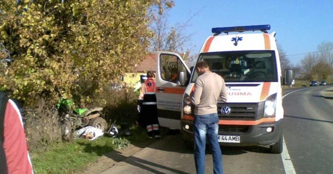 Un tânăr de 16 ani a murit după ce a intrat cu ATV-ul în copac
