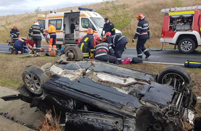 Accidentul a avut loc în judeţul Timiş, la coborârea de pe autostradă spre Lipova. Potrivit ISU, o maşină s-a răsturnat, iar trei persoane cu vârste cuprinse între 22 şi 24 de ani au fost rănite. Doi dintre tineri, un băiat şi o fată, au fost transportaţi la spital cu răni grave. Potrivit ISU, la faţa locului a fost trimis şi un elicopter SMURD.