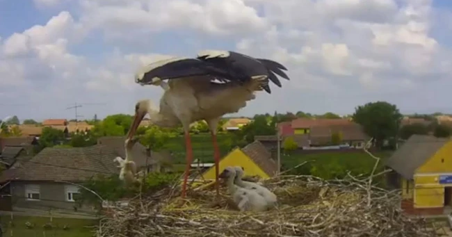 VIDEO Big Brother dintr-un cuib de barză albă. Cum şi-a sacrificat mama Ela puiul cel mic şi slab în direct pe Internet