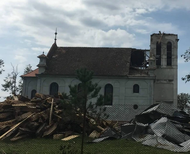 Anul trecut, în 17 august, turnul bisericii reformată a fost avariată de o furtună de mai mică amploare. S-au primit fonduri inclusiv de la Guvernul Ungar (care a oferit 70.000 de euro), pentru reabilitarea bisericii. De această dată furtuna a fost nemiloasă.