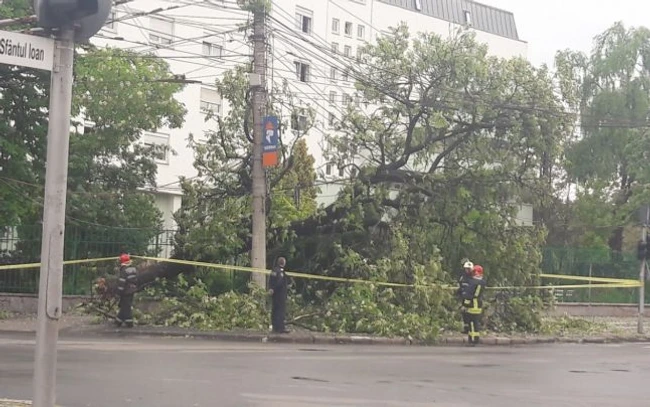 VIDEO FOTO Furtună în Timişoara, sâmbătă după-amiază. Copaci căzuţi şi acoperişuri luate de vânt