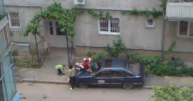 În imaginile postate pe Youtube apar mai mulţi copii care stau pe un fost autoturism folosit la taximetrie. Maşina are roţile dezumflate şi pare abandonată, astfel că micuţii nu au nicio problemă în a transforma autoturismul într-un loc de joacă. În plus, există şi avantajul faptului că joaca are loc în faţa blocului, loc în care părinţii îşi pot supraveghea odraslele.