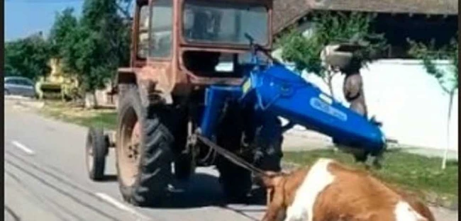 VIDEO Vacă legată în urma tractorului şi târâtă cu forţa pentru că nu se mai putea ridica. Scena oribilă, filmată în Timiş
