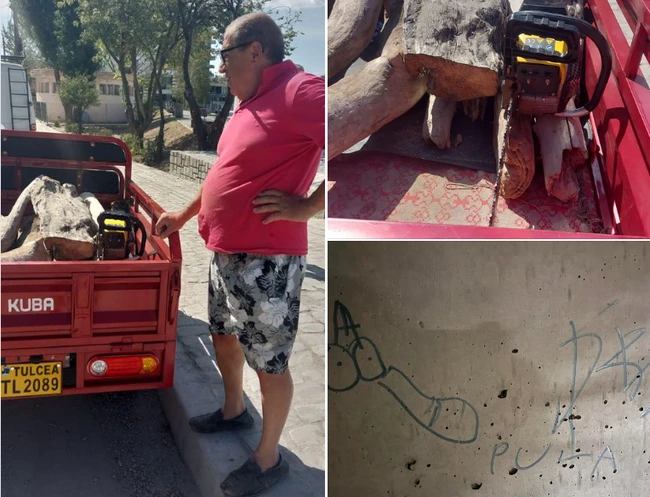 0Din complexul memorial Ivan Patzaichin, inaugurat la finalul săptămânii trecute, pe faleza Dunării din Tulcea, au fost luate trunchiuri de copac care fac parte din „Grădina Deltei", instalaţie artistică semnată de Olah Gyarfas, iar pe „Metopa" au fost lăsate desene şi înscrisuri obscene, potrivit Agerpres.