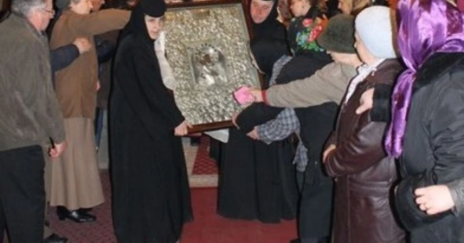 Sâmbătă P.S. Sa Visarion, înconjurat de un sobor de preoţi şi diaconi, a primit icoana Maicii Domnului Făcătoare de minuni de la Mănăstirea Celic Dere care a fost dusă în procesiune la biserica „Buna Vestire“ paraclis episcopal unde s-a săvârşit slujba Vecerniei cu Litia.