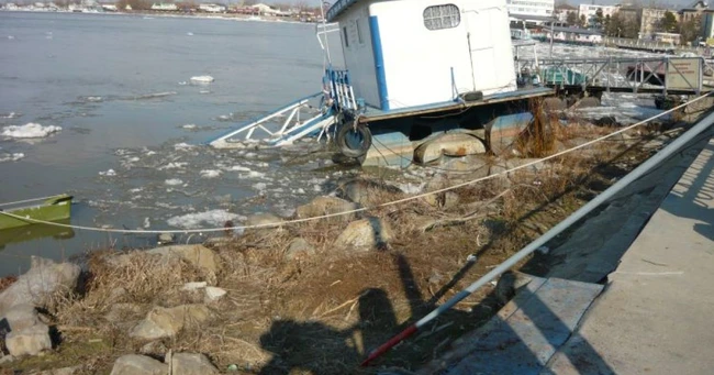 GALERII FOTO Sloiurile fac din nou ravagii la Tulcea: Iată cum arată unul dintre pontoanele din port!