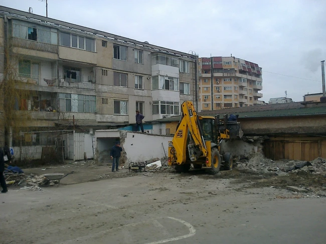Buldozerele au ajuns în Piaţa Veche, acolo unde au fost puse la pământ garajele.