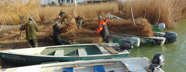 FOTO Insulă de pe lacul Sinoe, consolidată spre protecţia unei specii-simbol pentru Delta Dunării