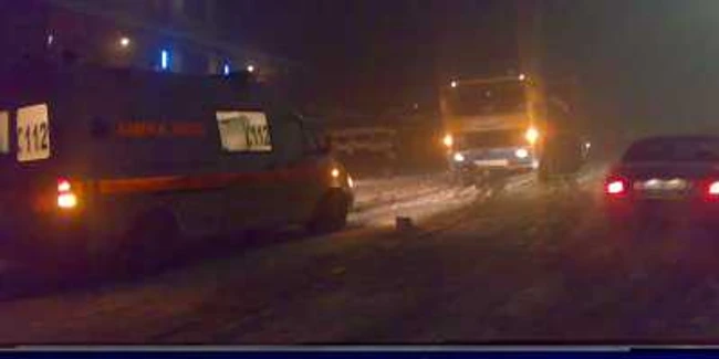 De la ora 4 dimineaţă o ambulanţă de transport persoane este blocată în zona dealului Somovei. Zeci de maşini au rămas blocate în trafic în aceeaşi zonă după ce un microbuz a derapat.