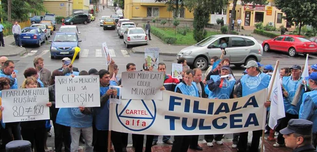 Sindicaliştii tulceni de la Cartel Alfa şi BNS protestează astăzi faţă de măsurile de austeritate şi disciplină bugetară dorite de liderii Uniunii Europene, a anunţat conducerea CNS Cartel Alfa.