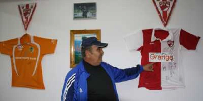 Printre numeroasele tricouri şi postere dinamoviste, dar şi cu Farul, toate cu dedicaţie specială pentru Isaccea, stă stingher şi un tricou al Stelei, tot cu autografe.