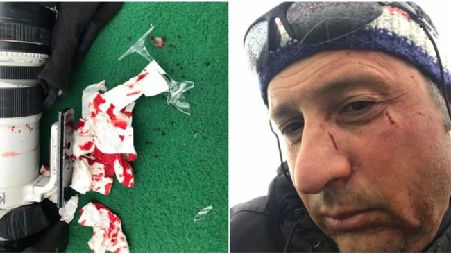 A urmat o nouă întoarcere a bărcii rapide, iar o persoană din acea barcă a aruncat un pahar de sticlă, lovindu-l pe Daniel Petrescu.