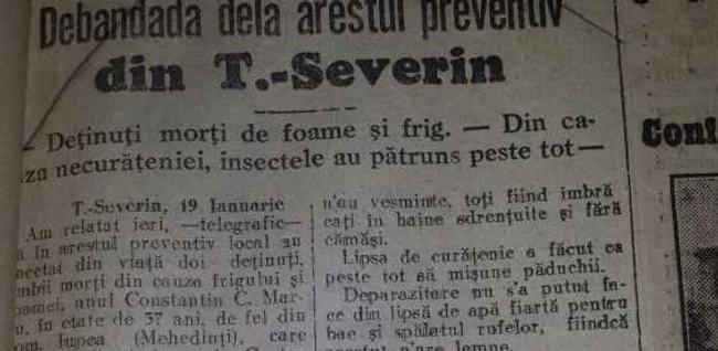 În articol se menţionează că doi deţinuţi, Constantin C. Marcu, în vârstă de 37 de ani, din comuna Iupca (Meehdinţi), care urma să fie judecat de Curtea cu juraţi şi Constantin G. Gheorghe, de 40 de ani, din comuna Simnic (Dolj), reţinut pentru furt până la judecarea lui, au murit din cauza frigului şi a foamei.