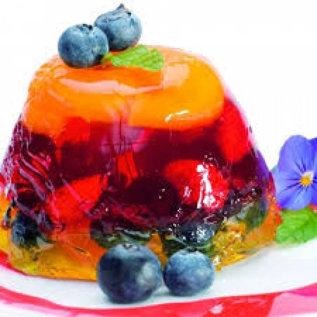 Ingrediente: ½ l apă, 200 g zahăr, zeama de la ½ lămâie, 8 foi gelatină, 2 albuşuri, 2 dl vin spumos, 1 farfurie fructe crude şi zaharisite.
