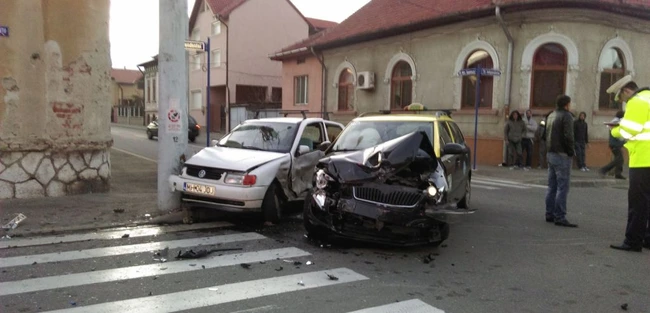 În urma impactului destul de violent, maşina al cărui şofer nu a acordat prioritate a fost grav avariată şi a fost proiectată într-un stâlp de electricitate. Şi taximetrul a fost grav avariat, iar doi pasageri care se îndreptau către destinaţia solicitată au fost răniţi.