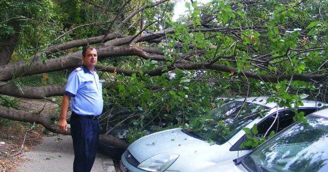 Patru poliţişti de la IPJ Mehedinţi au avut surpriza neplăcută ca luni dimineaţă, la scurt timp după ce au venit la servici, să fie anunţaţi că autoturismele propritate privată sunt avariate de un dud care a căzut peste ele. Oamenii sunt revoltaţi şi spun că vor da Primăria Drobeta Turnu Severin în judecată pentru despăgubiri. Niciunul din autoturismele afectate nu avea asigurare casco. „Eram la servici şi am fost anunţaţi de colegi că a picat un pom pe maşină. Nu am asigurare casco. Cred că voi da primăria în judecată, să vedem care este situaţia. Ar fi trebuit curăţaţi pomii în zona respectivă, putea să i se întâmple oricui, vă daţi seama. Este avariată partea dreaptă destul de grav şi plafonul puţin îndoit. Puteau să fie persoane în maşină, care să aştepte conducătorii auto şi se putea întâmpla o tragedie. Acest pom este aplecat de câteva luni bune şi trebuia să-l vadă cineva ca să-l taie", a spus Constantin Băloi, poliţist la IPJ Mehedinţi.