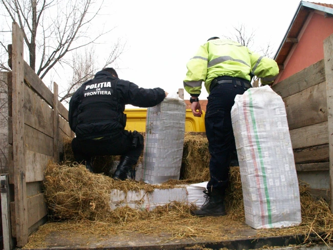 Astfel, în data de 19.11.2016, poliţiştii de frontieră din cadrul Compartimentului Sprijin Operativ al Serviciului Teritorial al Poliţiei de frontieră Mehedinţi au oprit în trafic, pe raza localităţii Pelişor, judeţul Dolj, o autocamionetă care transporta furaj balotat pentru animale şi care era condusă de Ion D. La controlul efectuat asupra vehiculului, poliţiştii de frontieră au descoperit ascunsă sub baloţii de fân, cantitatea de 10.740 pachete cu ţigări de provenienţă ucraineană, mărcile Pall Mall, Rothmans şi Jin Ling.