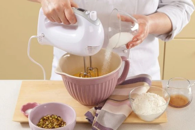 13. Tava pentru copt se va unge întotdeauna cu o pensulă înmuiată în ulei sau untdelemn, atât pe fund cât şi pe margini. Apoi se va presăra pesmet fin sau făină şi în felul acesta se va încălzi puţin în cuptor. După această pregătire se poate turna aluatul până la jumătatea înălţimii formei şi se va introduce la cuptor.