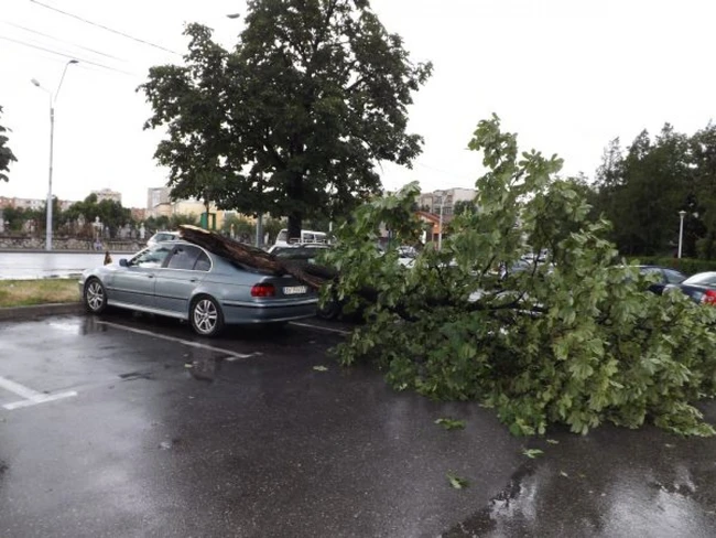 Un castan rupt de furtună a căzut pe un autoturism parcat pe aleea Corneliu Săvoiu nr. 5, provocându-i pagube importante.