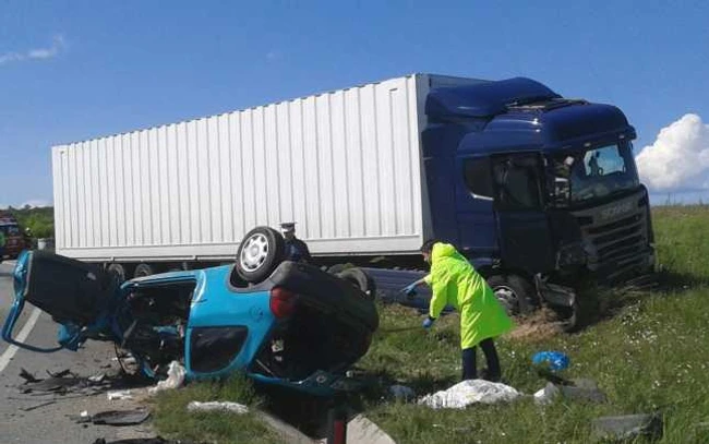 Trei persoane au murit zdrobite de un tir bulgăresc pe o şosea din Mehedinţi