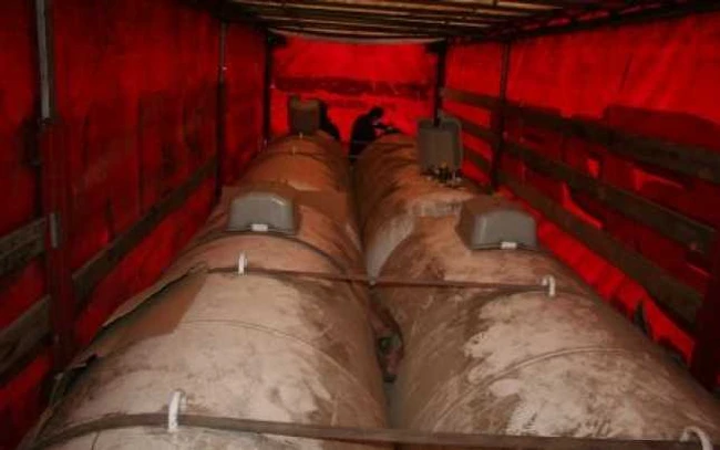 Efectuând controlul semiremorcii, oamenii legii au depistat în interiorul acesteia 6 recipiente încărcate, în proporţie de 80 la sută, cu gaz petrolier lichefiat, acestea însumând cantitatea de 24.000 de litri.