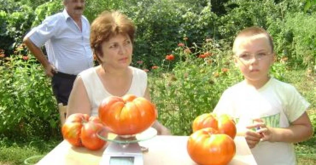 Rodica şi Alexandru Alecu, o familie de gospodari din cartierul severinean Schela Nouă s-au minunat când au văzut că, în acest an, toate roşiile crescute cu migală în grădină au depăşit greutatea de un kilogram bucata. Cea mai mare tomată a ajuns la 1,43 kilograme, iar pe fiecare vrej au crescut patru sau cinci astfel de tomate. Rodica Alecu, informatician de meserie, ştie de la bunica ei cum să crească şi cum să îngrijească roşiile. De la bunica sa are, de altfel, şi seminţele de roşii.