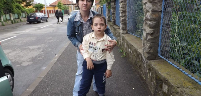 „Problemele au început la doi ani şi 10 luni. A plecat mai greu în picioare la vârsta de doi ani, dar medicii au spus că nu este nicio problemă, că să am răbdare că se dezvoltă mai greu fiindcă l-am născut prematur, cu o greutate de 1,4 kilograme. Văzând că din ce în ce merge mai greu, într-o parte, pe vârfuri, mânuţa dreaptă nu-l mai ajuta am fost să consult medici care au pus diagnosticul de paralizie cerebrală şi semipareză dreaptă. Are imunitatea scăzută, răceşte foarte des, la grădiniţă nu putem merge cel mult două zile că în rest este răcit şi nu îi trece decât cu injectabile, cu antibiotice. Recent i s-au depistat şi nişte micronoduli la plămâni, care pe mine mă sperie”, spune Daniela Vamvu, mama copilului.
