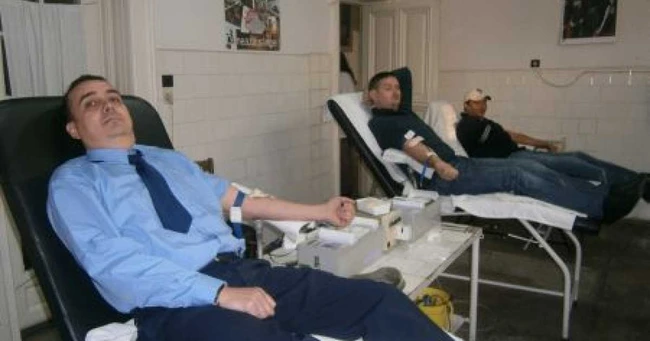 Bărbatul a venit alături de colegi să doneze sânge însă în momentul în care a văzut asistentele şi acele i s-a făcut rău. Ca să-şi revină cadrele medicale l-au luat la palme şi l-au scos din sala de recoltare ca să-şi revină. Jandarmul nu a mai donat sânge.