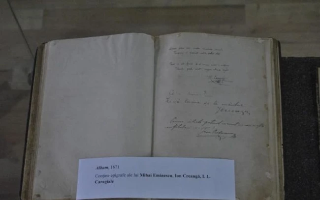 Un manuscris extrem de valoros cu epigrafe semnate de Mihai Eminescu, expus la Biblioteca Judeţeană " I. G. Bibicescu "