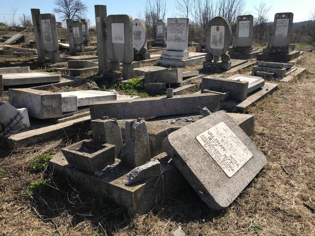 ”Cimitirul evreiesc din Huşi arată ca după un bombardament. Cineva a incendiat vegetaţia uscată şi crengătura căzută de ani de zile. Arată groaznic. Dar mai şocant, sunt mormintele devastate în zona mai nouă a cimitirului, unde sunt morminte din anii 1975- 2015 . Pietrele funerare sunt efectiv smulse din postamentul respectiv, chiar dacă aveau fier beton destul de gros. Din câte ştiu, are un administrator, care primeste fonduri de la evreii plecaţi în Israel (urmaşii celor decedaţi). Dar cimitirul arată groaznic, pe o latură, gardul este dărâmat complet. Aceste imagini sunt de astăzi, 23 martie 2019”, atrăgea atenţia Rodica Gogoaşă pe un grup local din Huşi.