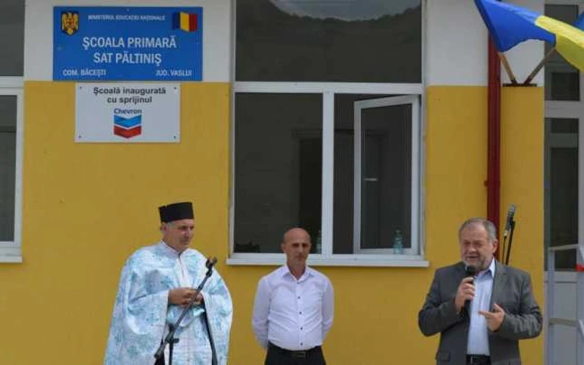 0Astăzi, în satul vasluian Păltiniş a avut loc inaugurarea noii şcoli din localitate investiţie finalizată cu sprijinul companiei Chevron, cea care a concesionat în zonă un teren şi a obţinut avizele de mediu pentru explorarea gazelor de şist.