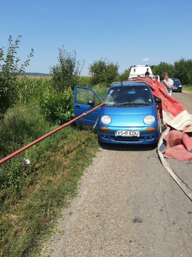 0Un accident rutier mai puţin obişnuit a avut loc sâmbătă, 20 iulie, în judeţul Vaslui, pe şoseaua care face legătura între localitatea Costeşti şi Drumul European 581.