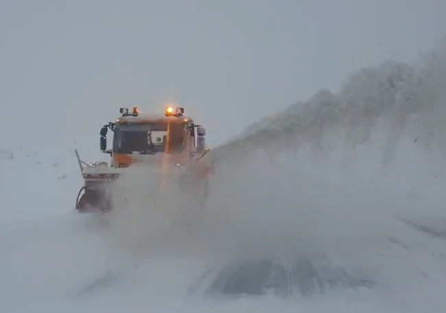 Șofer de pe utilaj de deszăpezire, la un pas să lovească un polițist. El a fost amendat pentru viteză