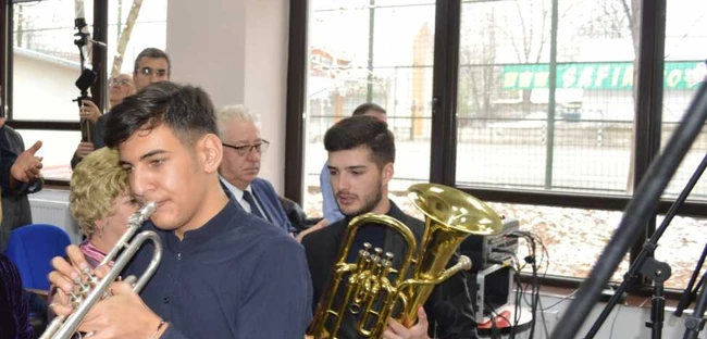 Coordonaţi chiar de fiul profesorului Talmaciu, Codrin, membrii Fanfarei Rotaria au interpretat două melodii în aplauzele celor prezenţi.