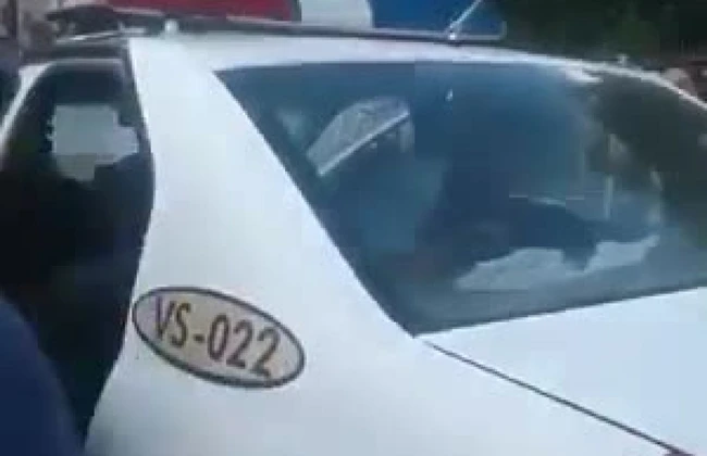 Băiatul în vârstă de 16 ani reuşeşte să iasă din autospeciala Poliţiei, iar cinci poliţişti fac cu greu faţa rudelor care încearcă să oprească intervenţia. La scenele violente au asistat şi copii mici care se aud în înregistrare plângând şi ţipând.