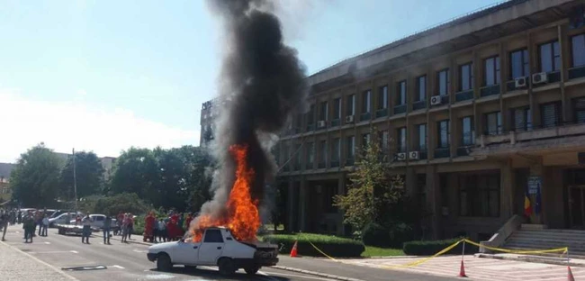 Publicul spectator, format în cea mai mare parte din copii, a urmărit, cu sufletul la gură, fiecare manevră a pompierilor în vederea descarcerării celor două victime ale unui accident rutier, precum şi intervenţiile făcute pentru stingerea flăcărilor ce au cuprins un autovehicul şi a incendiului izbucnit la ultimul nivel al clădirii Prefecturii.