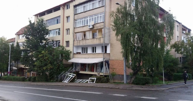 La un bloc de pe strada Gheorghe Doja, vântul a smuls fereastra cu tâmplărie PVC de la balconul situat la etajul al doilea, proiectând-o pe trotuar. Din fericire, nicio persoană nu se afla în zonă.