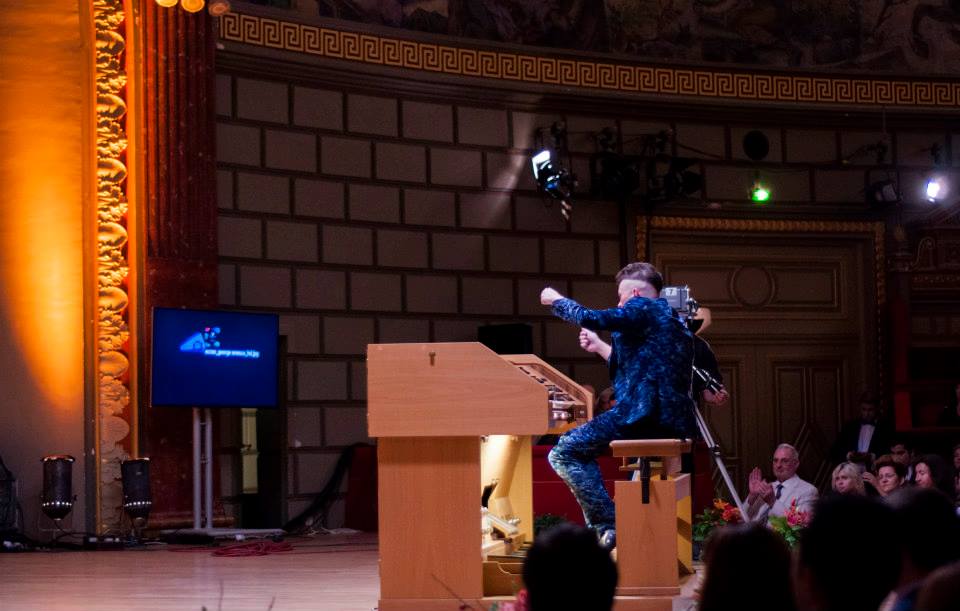 Asemenea unui star rock, artistul american, cu tunsoare ciudată şi costum fistichiu, a umplut scena cu sunete. Iar eu m-am bucurat teribil să-l ascult cântând la orga Ateneului Român; o orgă frumoasă, cu sunet extraordinar, o sinteză între romantic şi baroc, construită în Germania, în 1939, în atelierul lui Oscar Walcker, chiar la iniţiativa lui George Enescu; şi instalată în acelaşi an 1939 la Ateneul Român de muncitori nemţi de la fabrica Walcker – muncitori fericiţi că se află aici, la Bucureşti, instalând o orgă, şi nu în Germania, unde începuse deja cel de-Al Doilea Război Mondial. „În vremuri ca acestea, până şi orgile devin baricade”, a scris unul dintre ei pe o bucată de hârtie; iar mesajul a traversat timpurile.