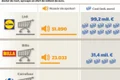 Cele mai multe supermaketuri şi hipermarketuri din România se găsesc în macroregiunea Muntenia-Sud (775), iar cele mai puţine în macroregiunea Sud-Vest Oltenia (265). Compania Mega Image numără cele mai multe supermarketuri din ţară (482), urmată de Profi (391) şi de Lidl (194).