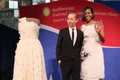 Ea a ales să poarte o rochie lungă, bleumarin, din mătase, cu un umăr gol, accesorizată cu bijuterii cu diamante.