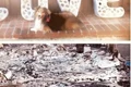 În partea dreaptă a casei starului şi în faţă se pot vedea ravagiile făcute de foc.