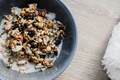 În final, după ce preparatul este gata, transferă terciul într-un bol și adaugă fructe, nuci, semințe sau unt de arahide.