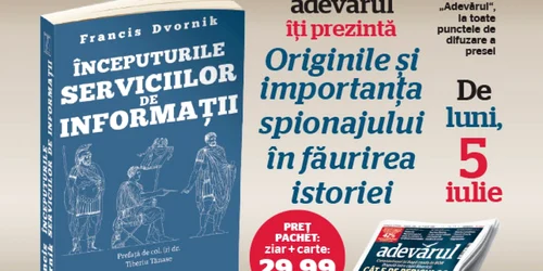 Din 5 iulie, Adevărul îţi aduce „Începuturile serviciilor de informaţii” – Francis Dvornik