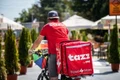 Agenții de livrare de mâncare pot fi adesea văzuți prin orașele aglomerate din India, croșetând prin trafic, pentru a livra la timp.