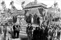 Tricolorul nostru drag se arată destul de rar, mai cu seamă pe edificiile publice, şi pare profund insultat la el acasă, în ograda lui. Defilarea este încheiată de pompierii voluntari. Graşi, toţi rotofei, în uniforme strălucitoare, la şold cu securi frumos nichelate. Într-un cuvânt, saşii se văd acum stăpânii Braşovului şi câmpiei Bârsei“.