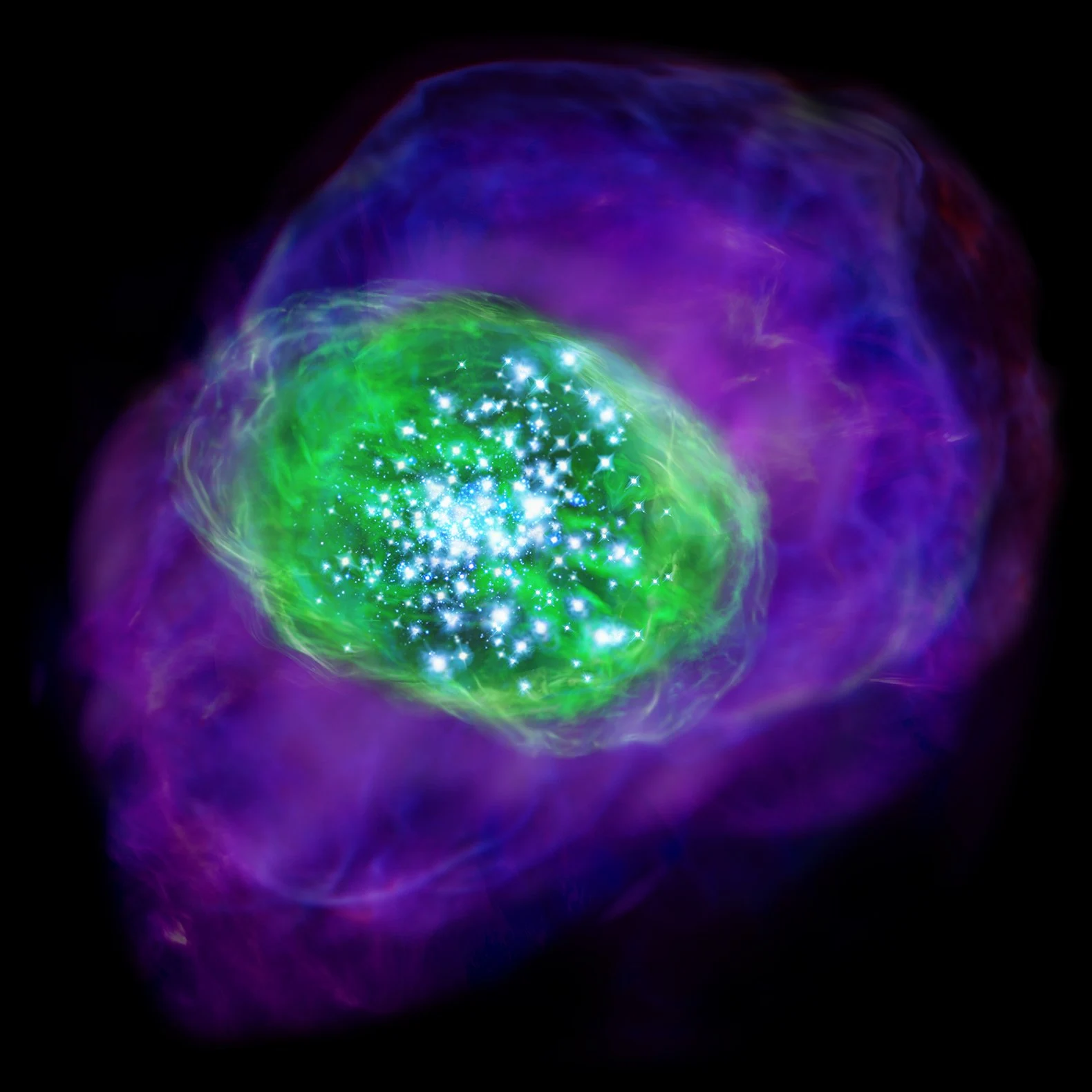 În centrul acestei nebuloase bipolare se află o stea pitică albă, care și-a aruncat demult în spațiu straturile externe de gaz.